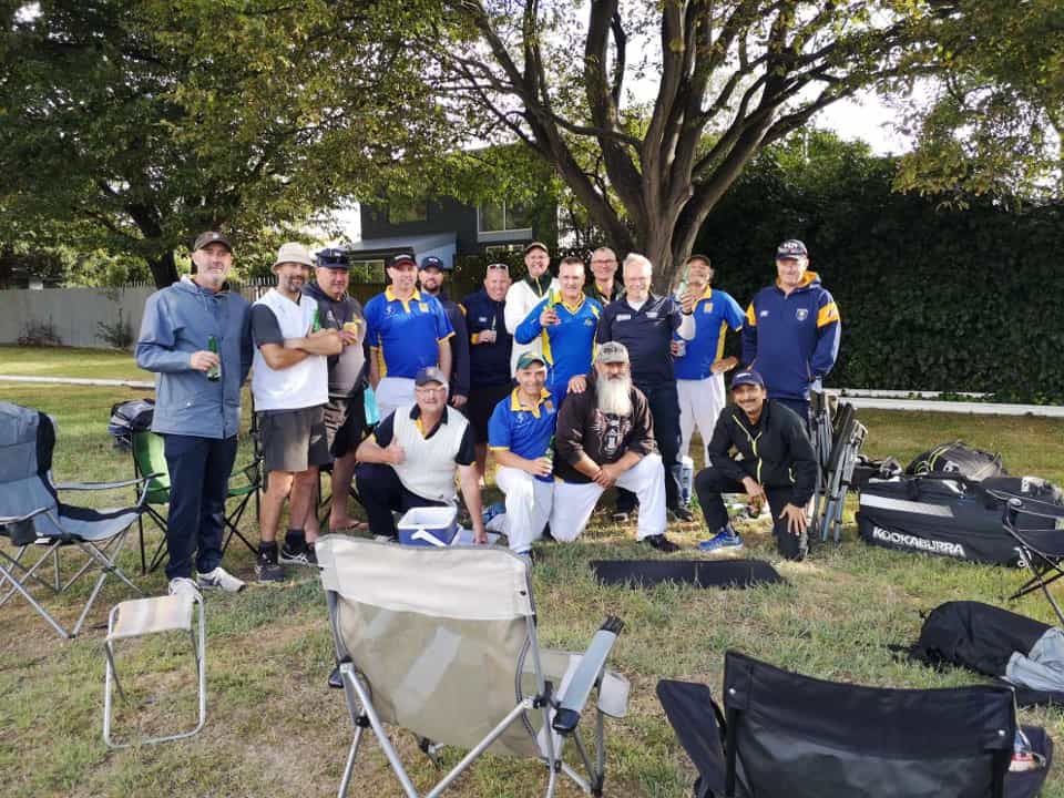In reply, The Tunnel Rats started strongly with an opening partnership of 38. The first wicket went to Kris Rowe, picking up the gutsy Harris, who took a few on the body. The wicket fell in Rowe’s 7th over. A fired up Rowey followed the opening wicket with 2 more which saw the Tunnel Rats wobbling at 40/3 after 15. Rowey ending with 3/22 off his 8 overs. The fall of the 3rd wicket, saw John Garry, who was looking dangerous, joined at the crease by Vash Patel and together they threatened to take the game away from Merivale-Papanui. They got to drinks with the score at 74/3 and continued confidently after drinks. The introduction of captain, Petros Kapralos, and reluctant bowler Mark Hume, saw the scoring rate slow. Mark Hume then had John Garry LBW for a solid 64, which opened up an end. With 40 needed off 9 overs, PK picked up the second key wicket of Vash Patel for 37. With the pressure on, PK picked up 4 more wickets, as The Tunnel Rats went from 117/3 to 139/9, the last batsman, unable to bat because of injury. Petros finished with 5/16 from 6.1 overs. Ranjith Rangajaran followed up his 36 with a stumping and three catches. It was a good, tough match played in good spirits, between two evenly matched teams. A few dropped catches and other poor cricketing moments meant our fine tin rattled a bit during the fines session. The day ended splendidly with both teams sharing a drink and a few stories.